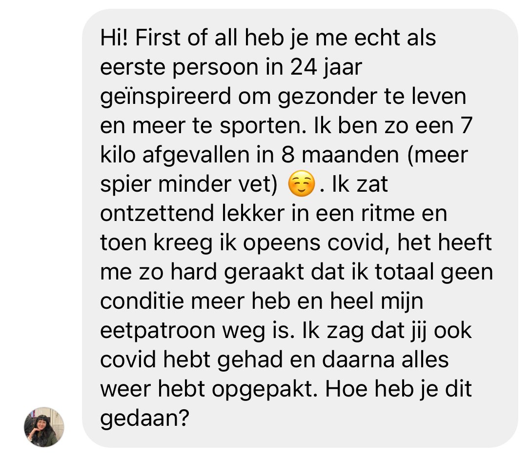Dankzij de coaching van Amber en haar motiverende positiviteit heb ik geleerd hoe ik kan afvallen, op gewicht kan blijven en strak kan blijven, terwijl ik toch geniet. Ik blijf nou eenmaal een lekkerbek. Inmiddels zijn er 2 kilo bijgekomen, maar dat is pure spiermassa. Ik sport nu 2,5 tot 3 uur per week, en daar geniet ik weer volop van!