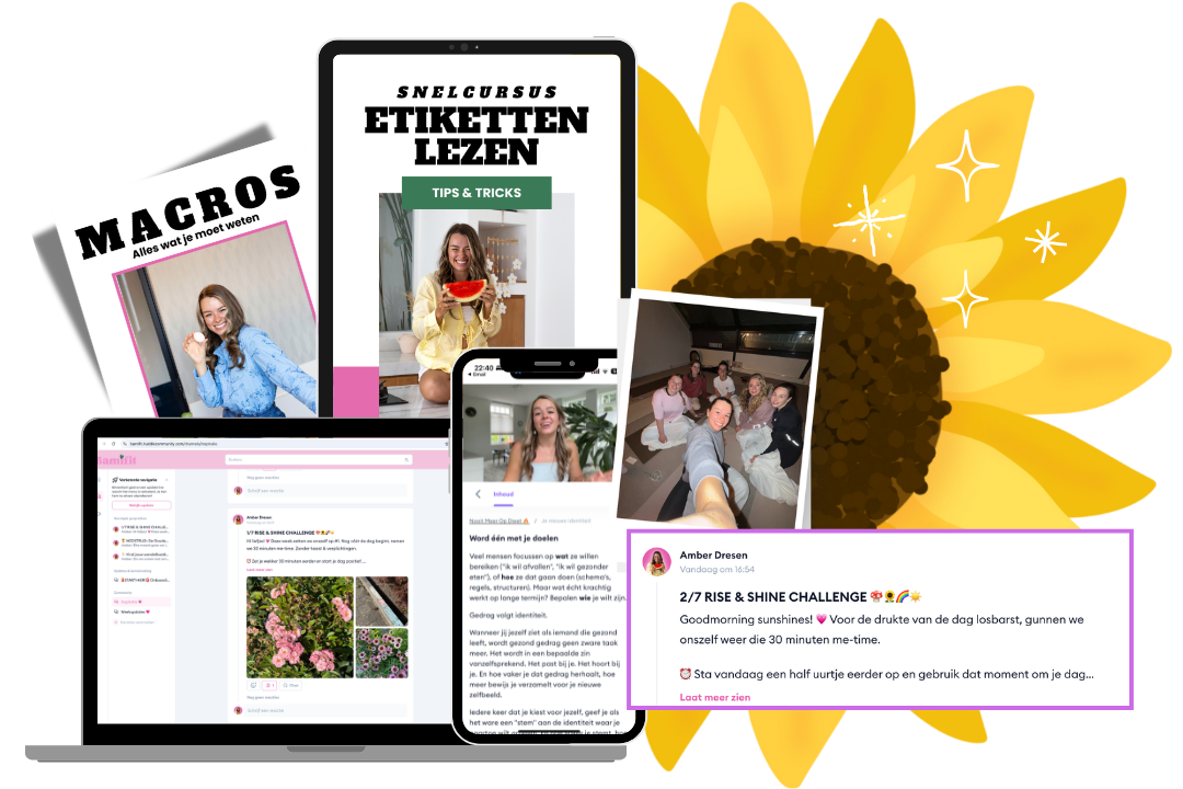 🌻 24/7 verbinden met Amber, haar coaches en gelijkgestemde vrouwen die jouw struggles begrijpen en jou motiveren naar jouw gezondste en gelukkigste versie!